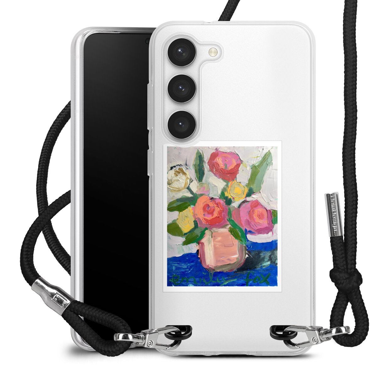 For our Carry Case we are using our advanced direct printing technology. The backside is fully printable, the frame is left unprinted. You can order the phone case without print, printed completely or also with a partial print. Choose one of our exclusive, pre-made shop designs or let your creativity shine and create your very own unique design with your pictures, overlays and text.