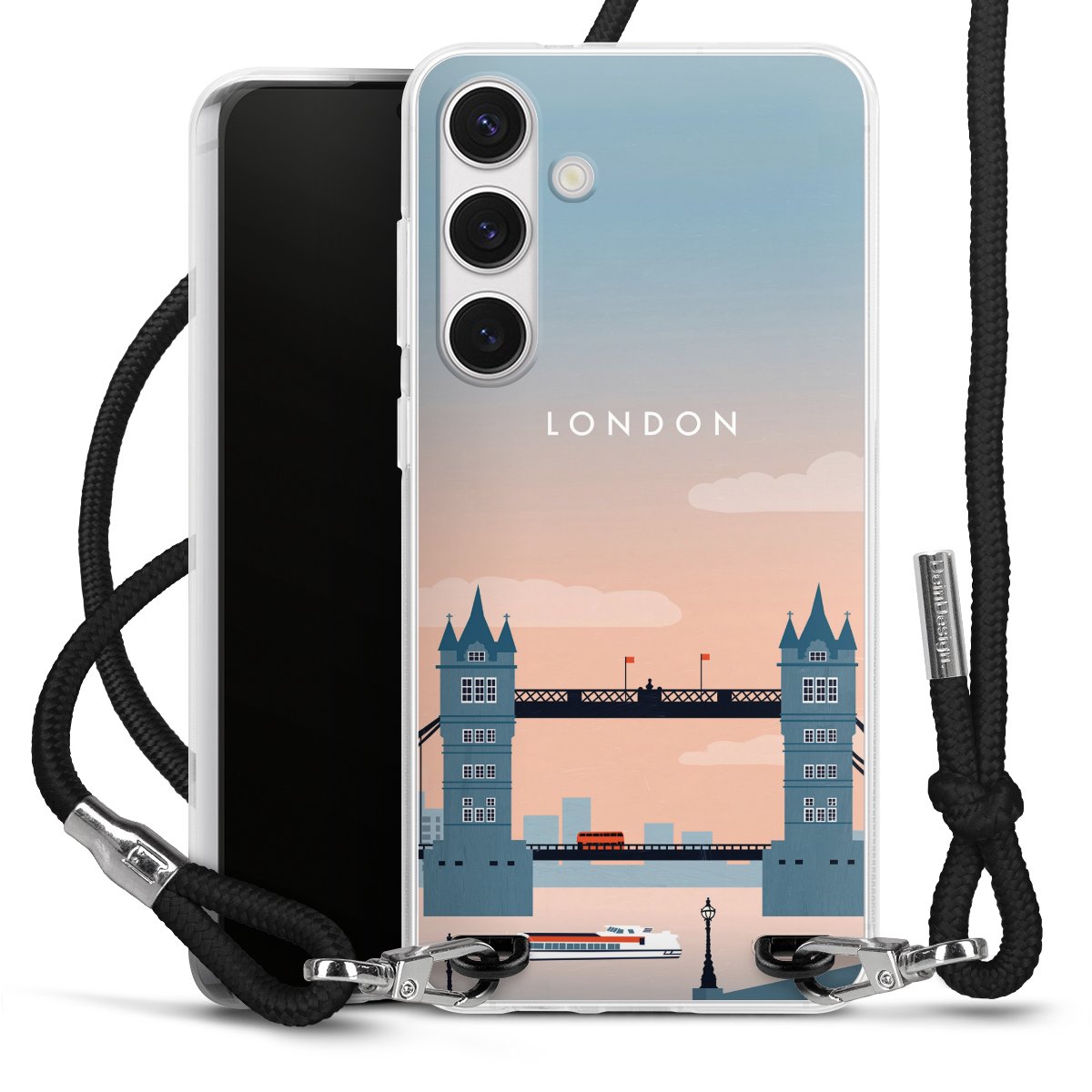 The flexible case is made from a high quality TPU material (thermoplastic Polyurethan). Thanks to its long-lasting and break resistant characteristics, the case is flexible yet consistent in form and has a great grip and feel. The textile strap made from Polyester gives a chic yet casual accent allowing you to carry your phone like a bag or necklace - a practical gadget perfect for your next adventure. The textile strap is about 1.70 meters long and the length can easily be adjusted through the knots. Our Carry Case is available in black, red, pink, grey, mustard, dark green and royal blue. We added a metal fastening to give the product an elegant touch. The ends of the textile strap are covered with metallic end caps to protect them against fraying.