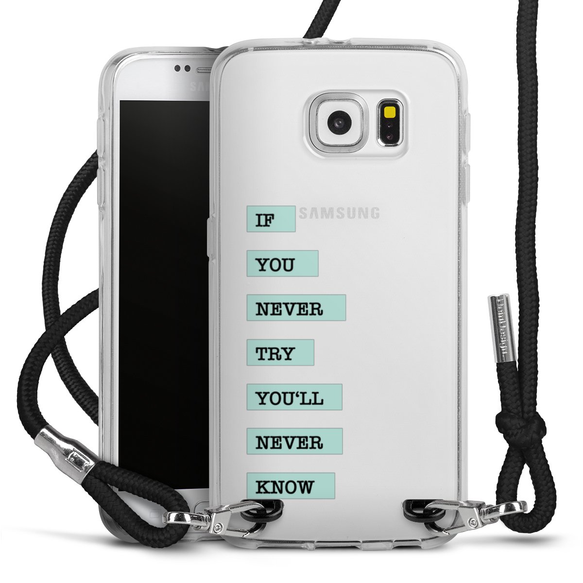The flexible case is made from a high quality TPU material (thermoplastic Polyurethan). Thanks to its long-lasting and break resistant characteristics, the case is flexible yet consistent in form and has a great grip and feel. The textile strap made from Polyester gives a chic yet casual accent allowing you to carry your phone like a bag or necklace - a practical gadget perfect for your next adventure. The textile strap is about 1.70 meters long and the length can easily be adjusted through the knots. Our Carry Case is available in black, red, pink, grey, mustard, dark green and royal blue. We added a metal fastening to give the product an elegant touch. The ends of the textile strap are covered with metallic end caps to protect them against fraying.