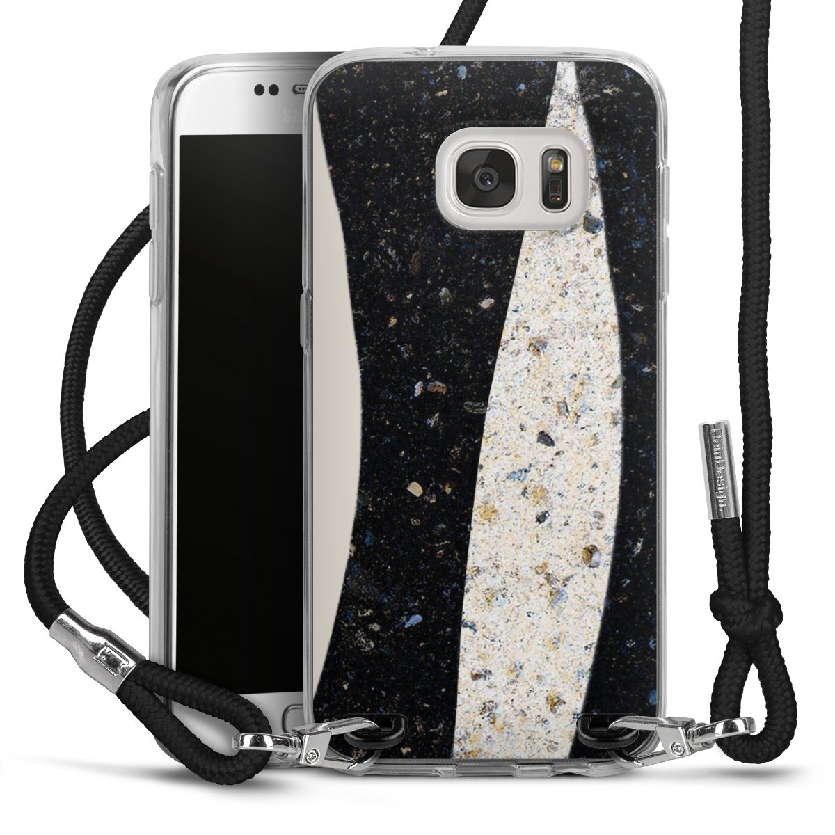 The flexible case is made from a high quality TPU material (thermoplastic Polyurethan). Thanks to its long-lasting and break resistant characteristics, the case is flexible yet consistent in form and has a great grip and feel. The textile strap made from Polyester gives a chic yet casual accent allowing you to carry your phone like a bag or necklace - a practical gadget perfect for your next adventure. The textile strap is about 1.70 meters long and the length can easily be adjusted through the knots. Our Carry Case is available in black, red, pink, grey, mustard, dark green and royal blue. We added a metal fastening to give the product an elegant touch. The ends of the textile strap are covered with metallic end caps to protect them against fraying.