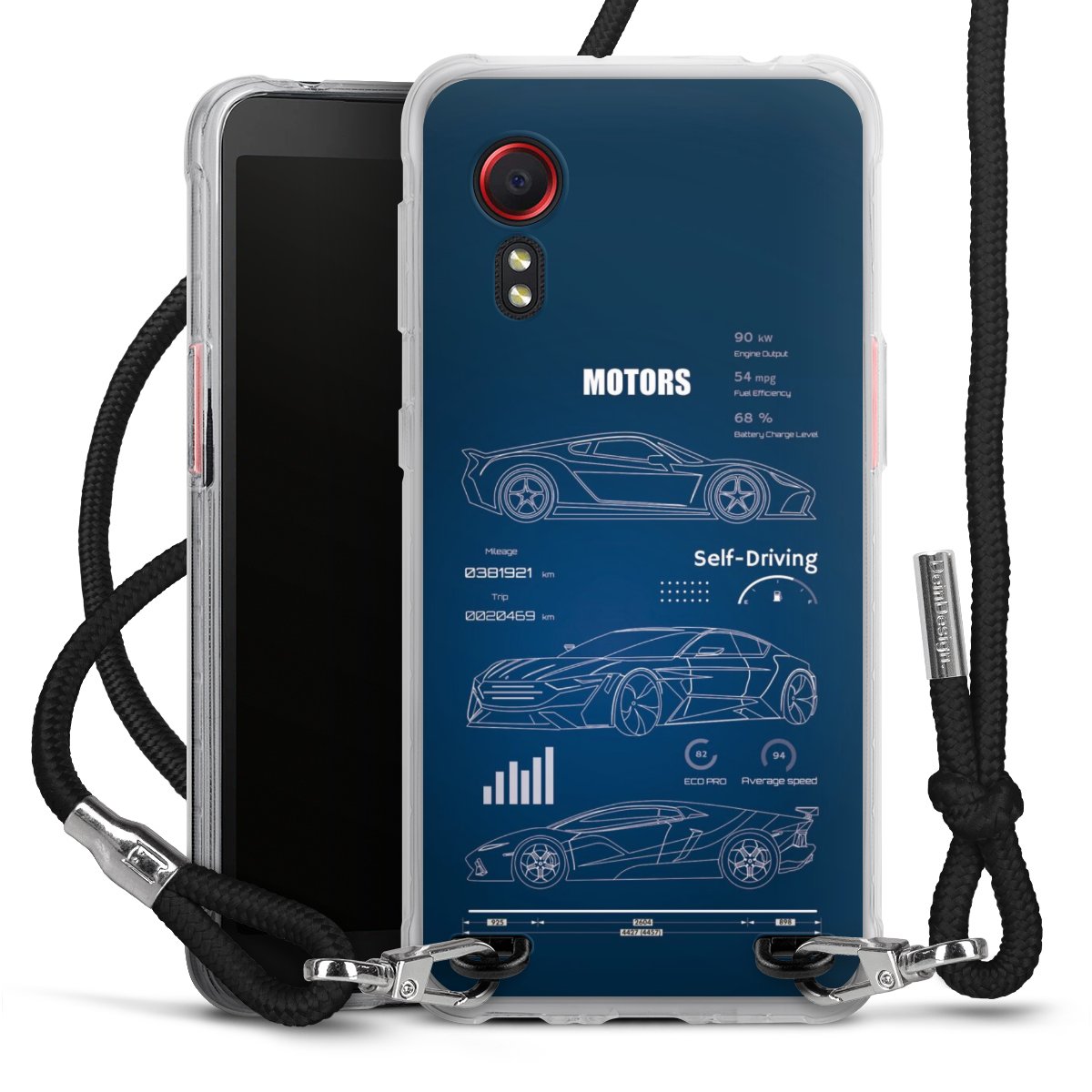 Keep your phone handy at all times, thanks to the flexible silicone case with a textile strap.