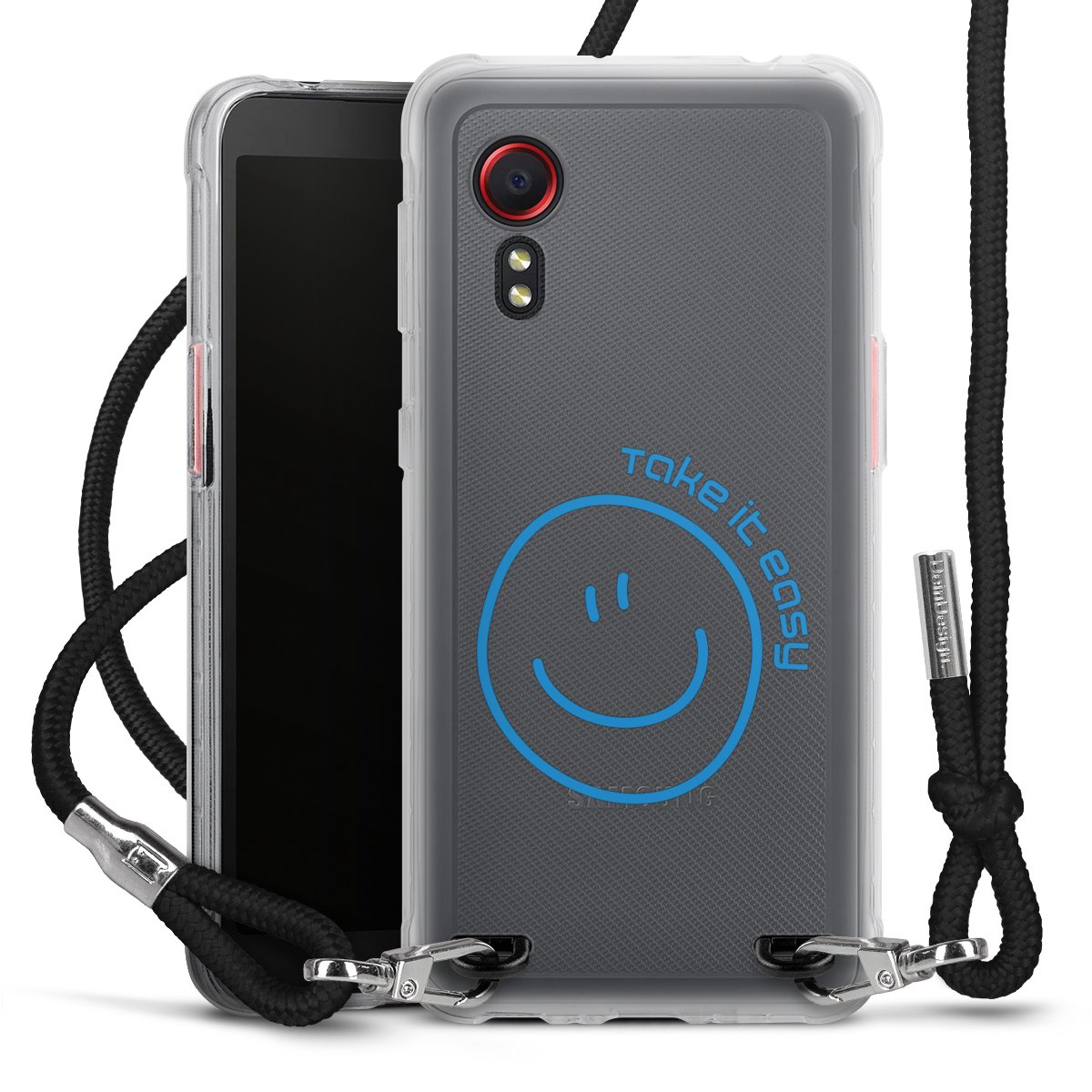 Keep your phone handy at all times, thanks to the flexible silicone case with a textile strap.