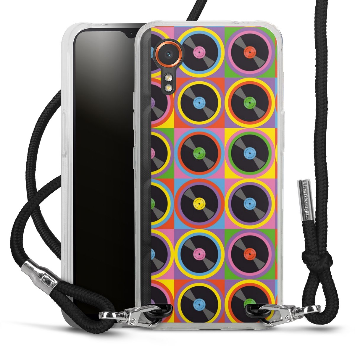 Keep your phone handy at all times, thanks to the flexible silicone case with a textile strap.