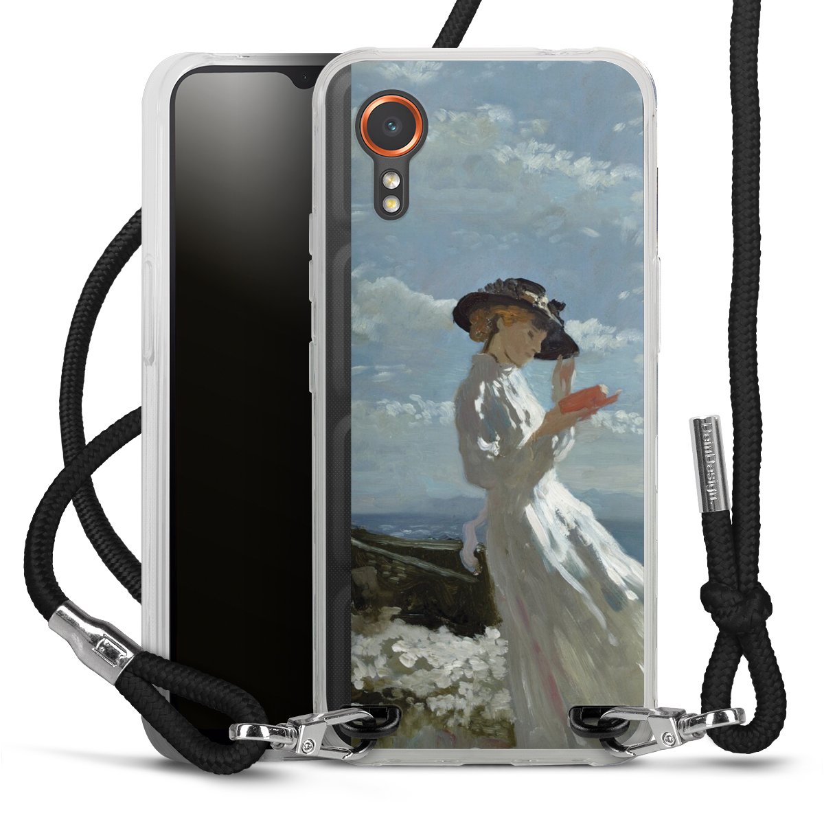 Keep your phone handy at all times, thanks to the flexible silicone case with a textile strap.