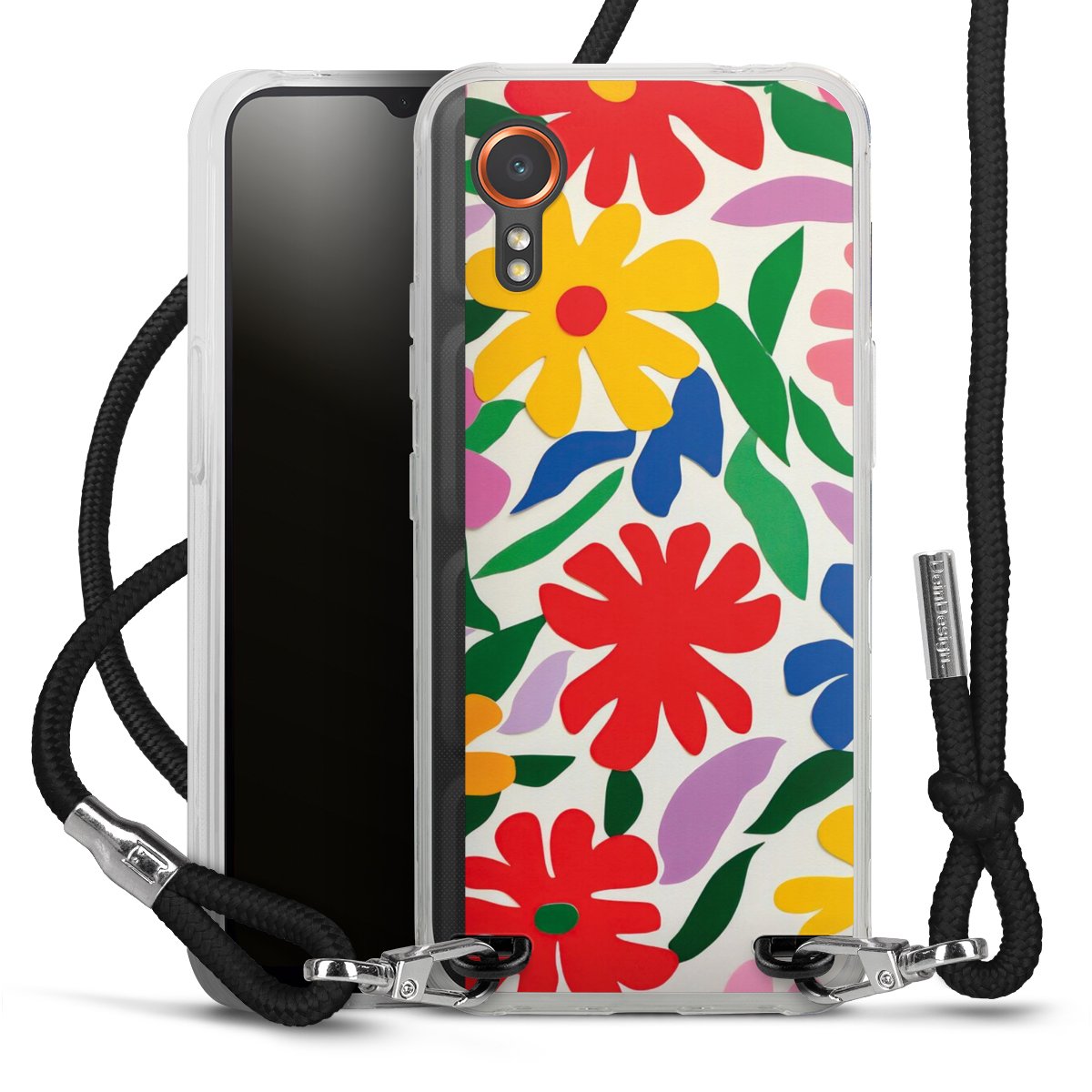Keep your phone handy at all times, thanks to the flexible silicone case with a textile strap.