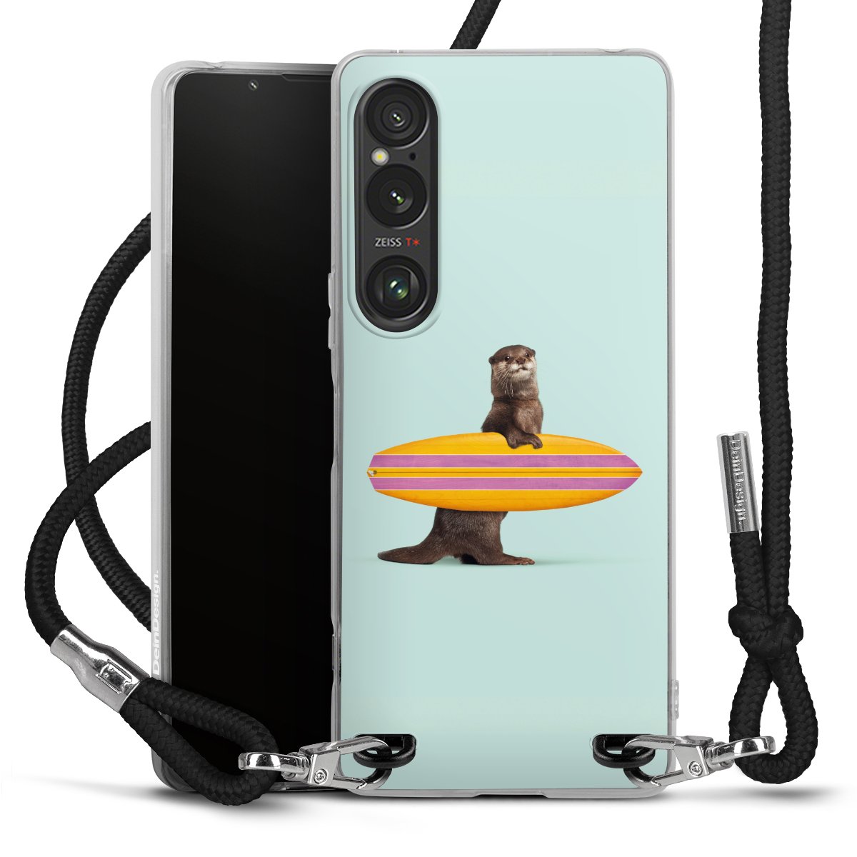Keep your phone handy at all times, thanks to the flexible silicone case with a textile strap.