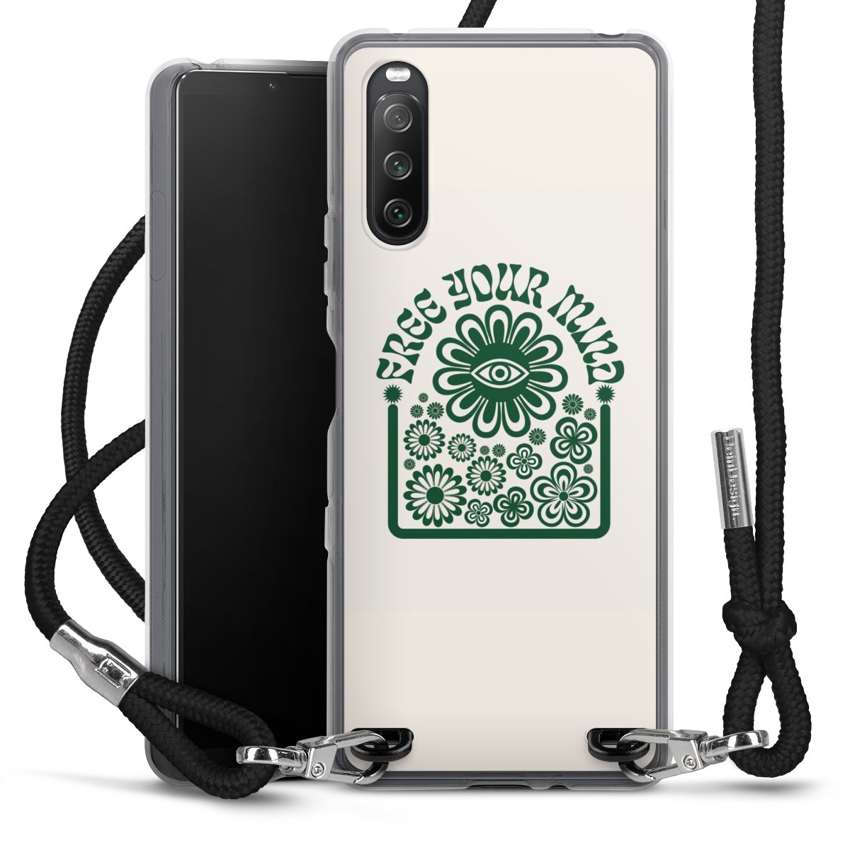 Keep your phone handy at all times, thanks to the flexible silicone case with a textile strap.