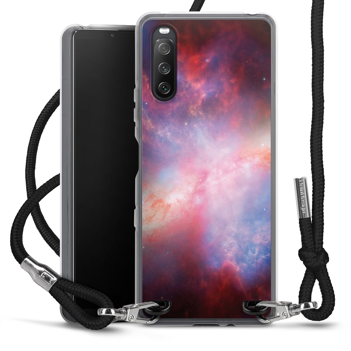 Keep your phone handy at all times, thanks to the flexible silicone case with a textile strap.