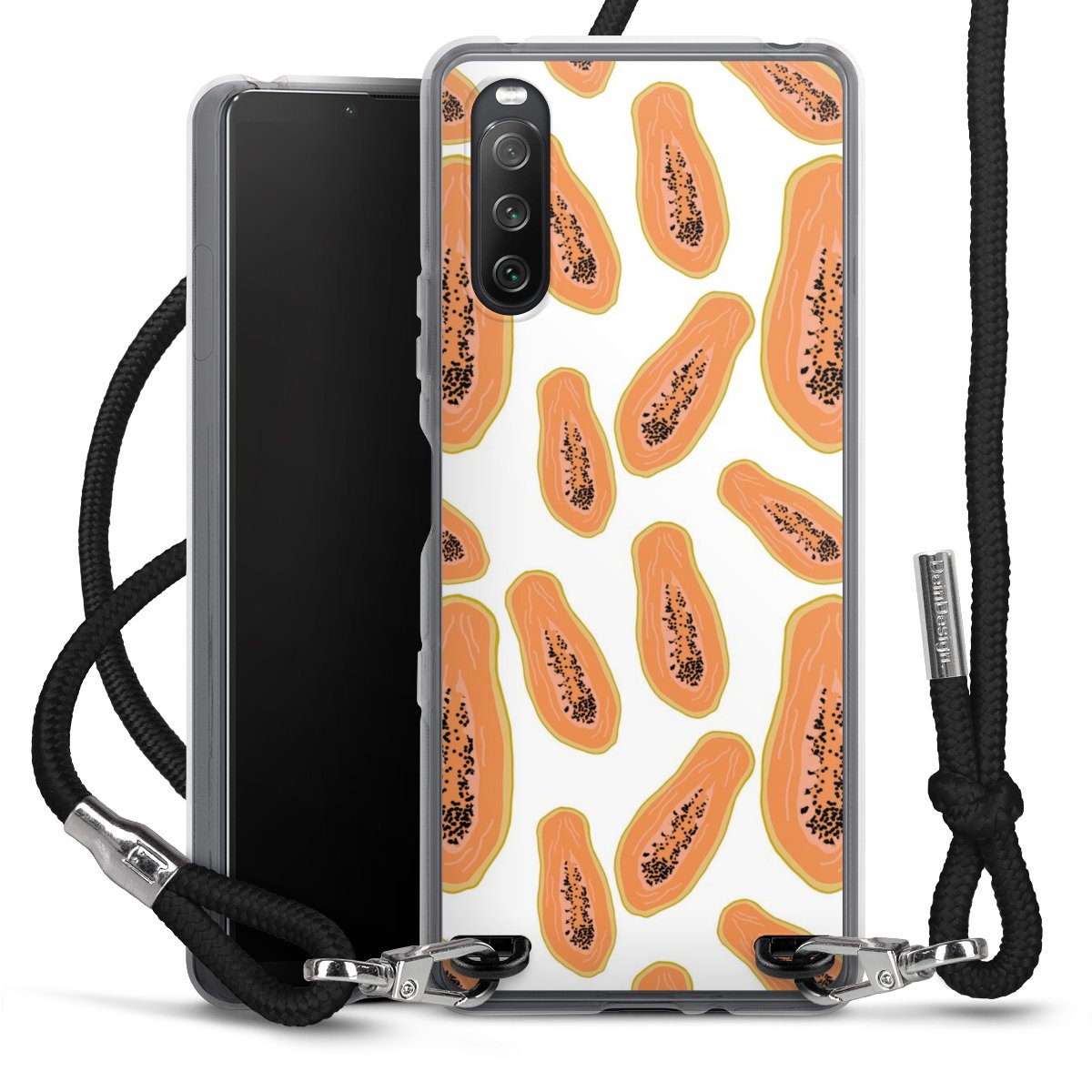 Keep your phone handy at all times, thanks to the flexible silicone case with a textile strap.