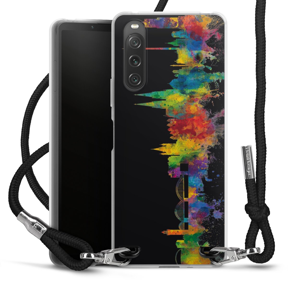 Keep your phone handy at all times, thanks to the flexible silicone case with a textile strap.