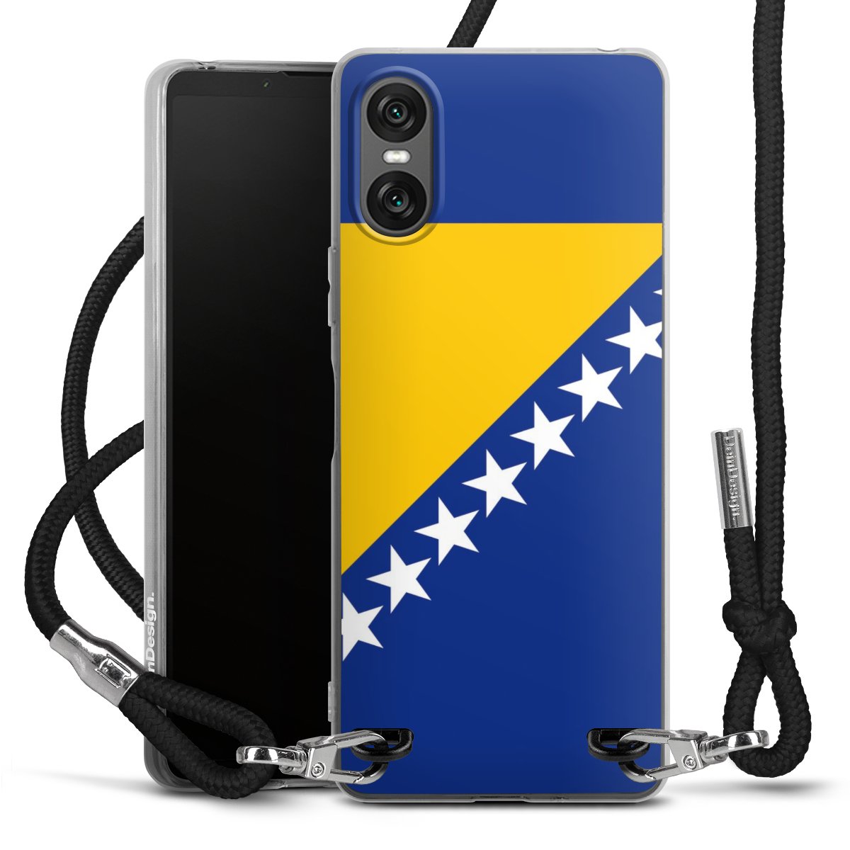 The flexible case is made from a high quality TPU material (thermoplastic Polyurethan). Thanks to its long-lasting and break resistant characteristics, the case is flexible yet consistent in form and has a great grip and feel. The textile strap made from Polyester gives a chic yet casual accent allowing you to carry your phone like a bag or necklace - a practical gadget perfect for your next adventure. The textile strap is about 1.70 meters long and the length can easily be adjusted through the knots. Our Carry Case is available in black, red, pink, grey, mustard, dark green and royal blue. We added a metal fastening to give the product an elegant touch. The ends of the textile strap are covered with metallic end caps to protect them against fraying.