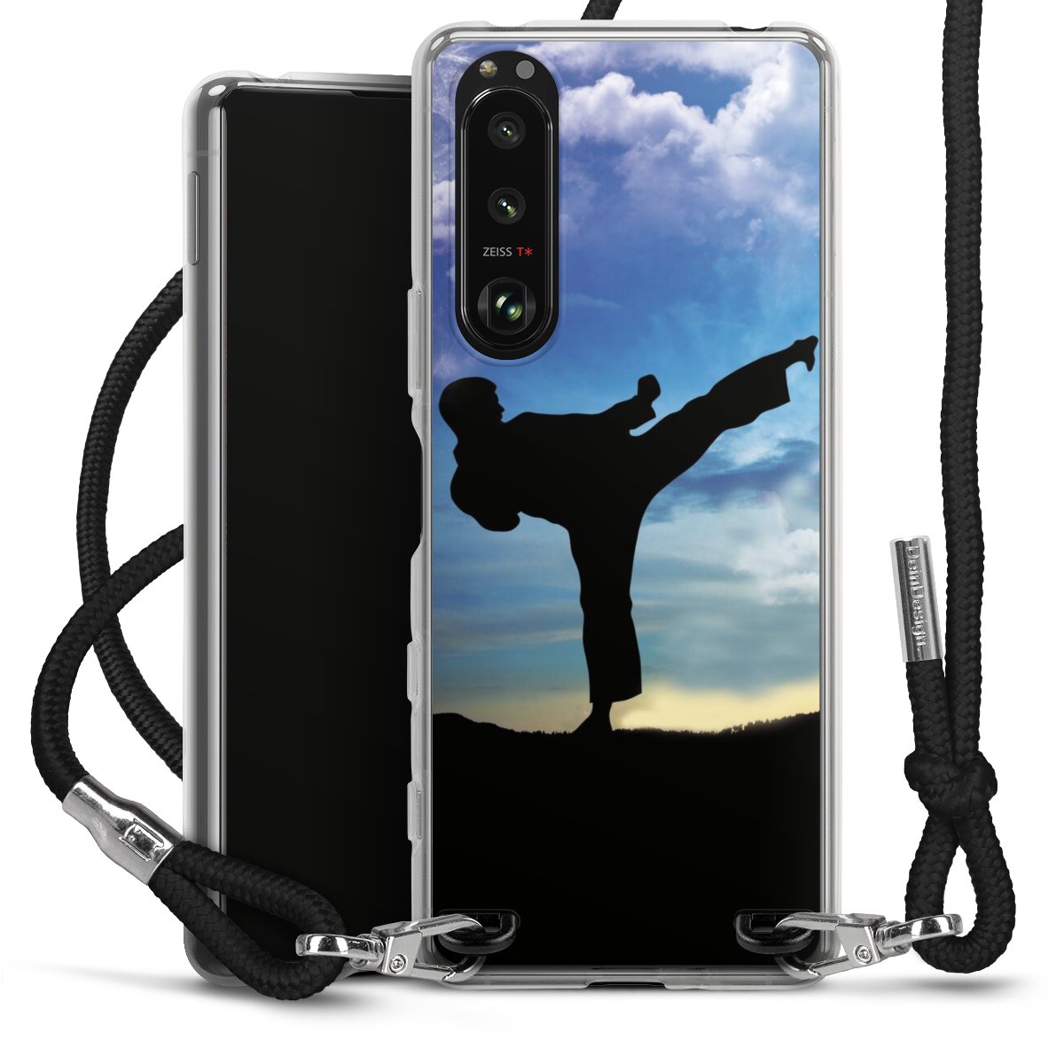 Keep your phone handy at all times, thanks to the flexible silicone case with a textile strap.