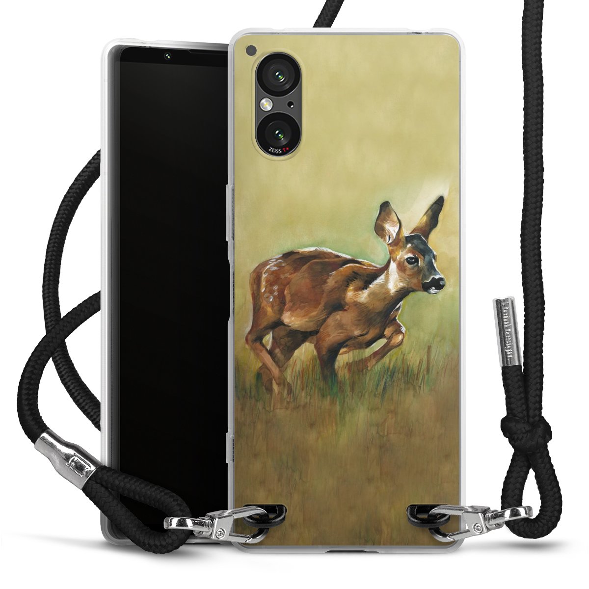 Keep your phone handy at all times, thanks to the flexible silicone case with a textile strap.