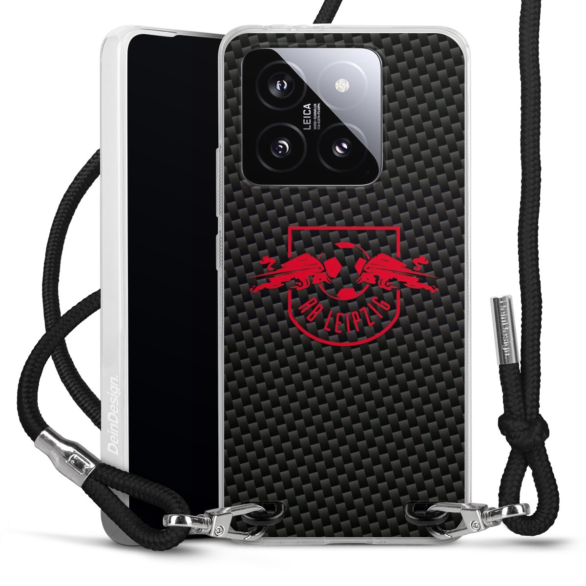 Red RB Leipzig logo on carbon look