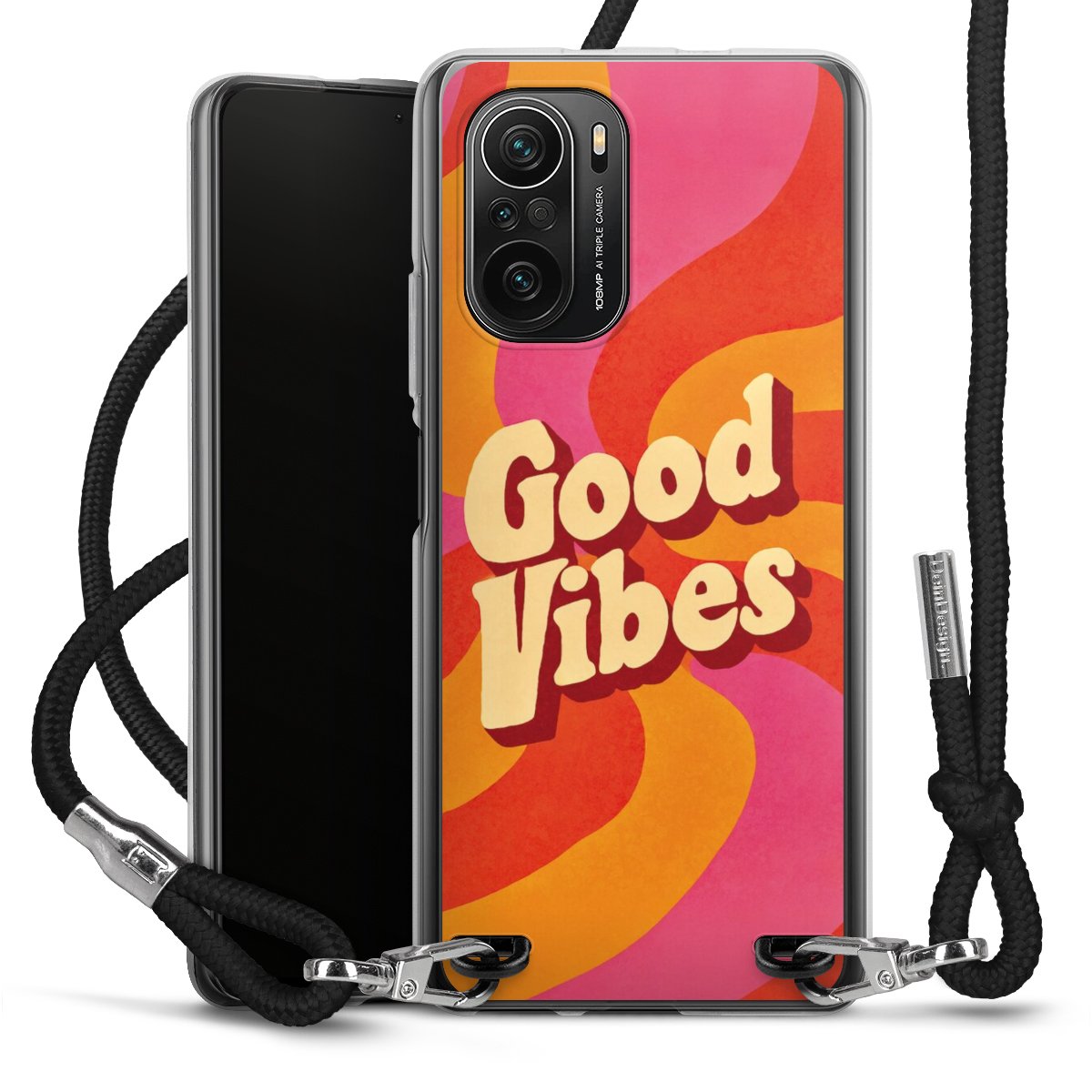 Keep your phone handy at all times, thanks to the flexible silicone case with a textile strap.