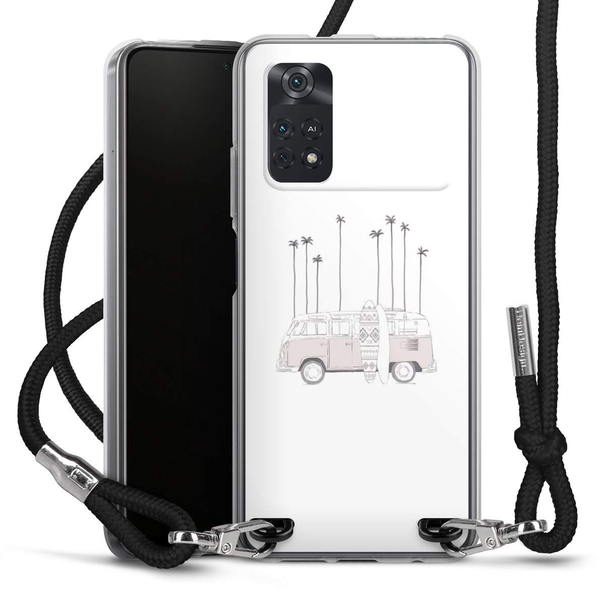 Keep your phone handy at all times, thanks to the flexible silicone case with a textile strap.