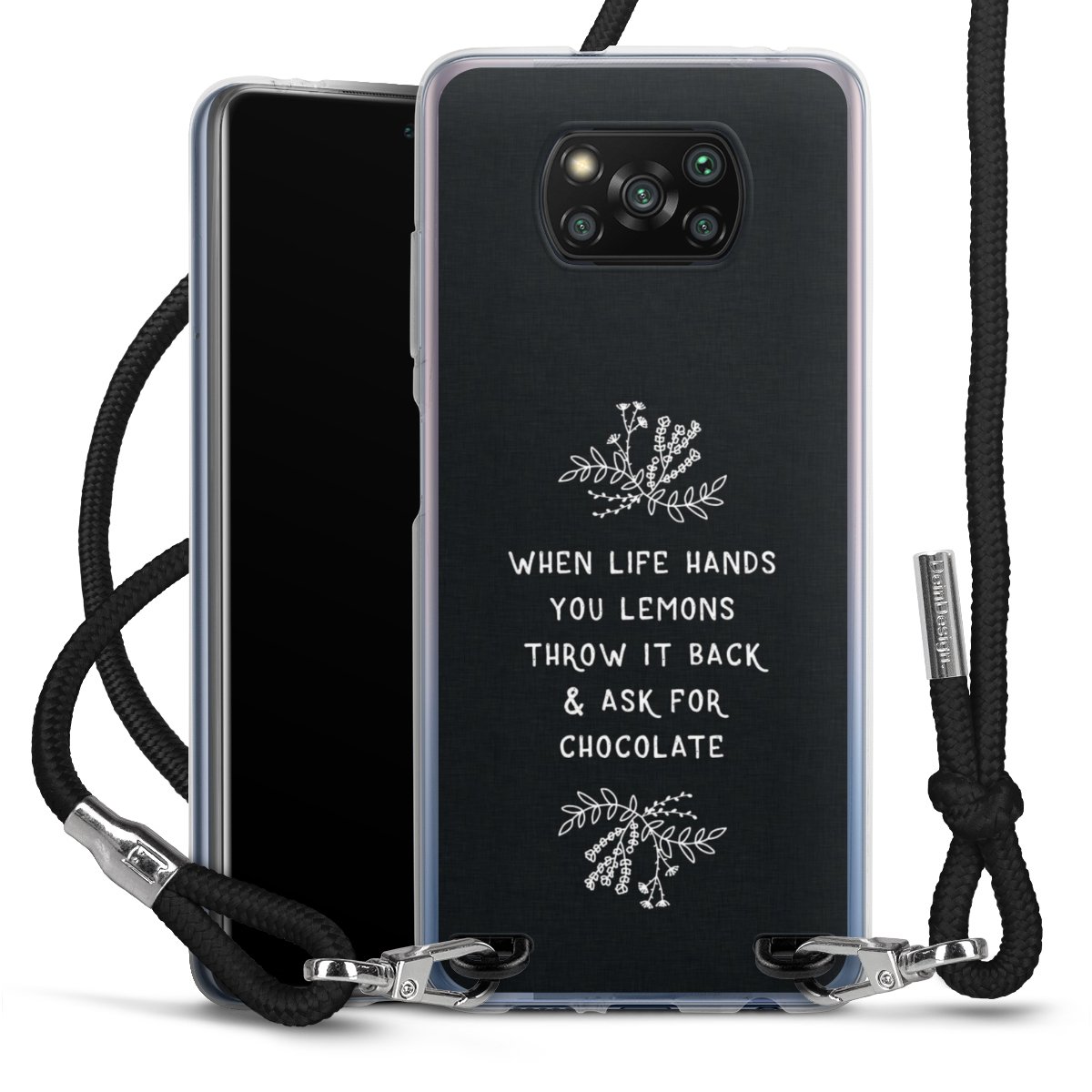 Keep your phone handy at all times, thanks to the flexible silicone case with a textile strap.