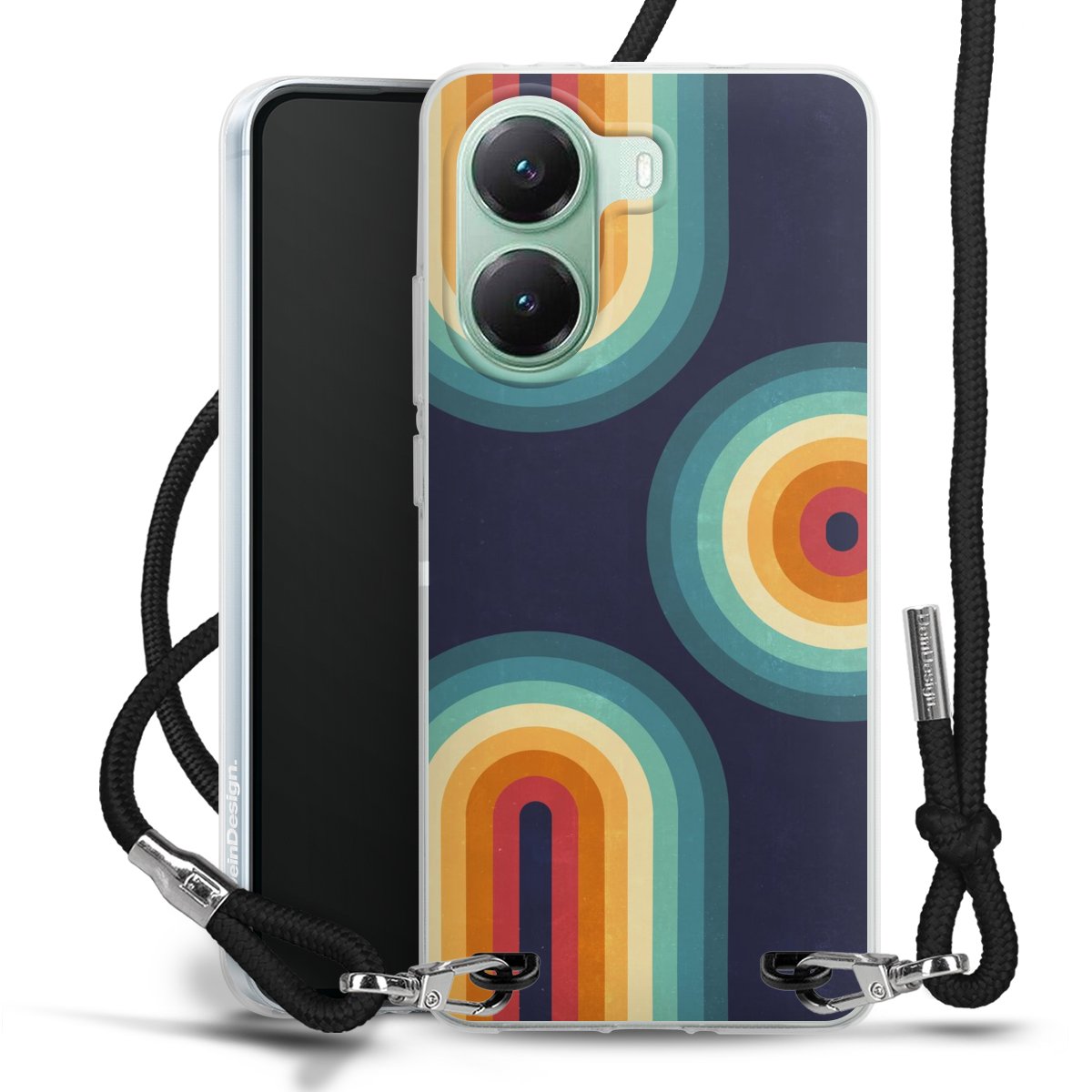 Keep your phone handy at all times, thanks to the flexible silicone case with a textile strap.