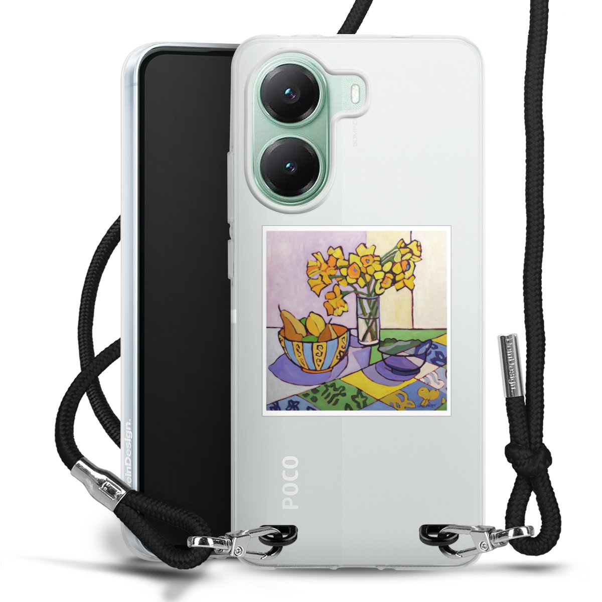 Keep your phone handy at all times, thanks to the flexible silicone case with a textile strap.