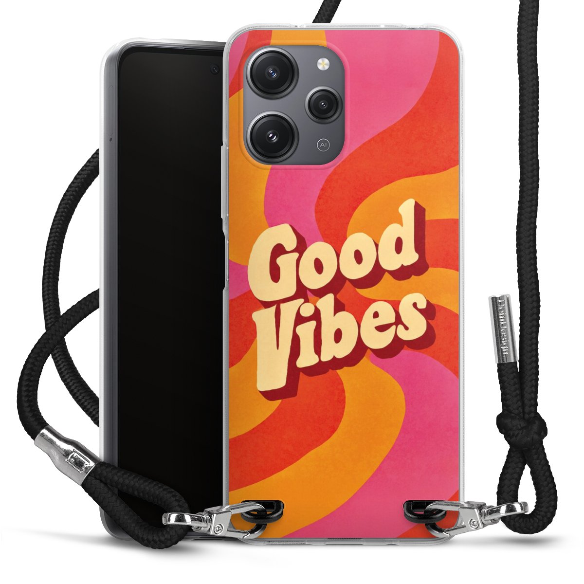 Keep your phone handy at all times, thanks to the flexible silicone case with a textile strap.