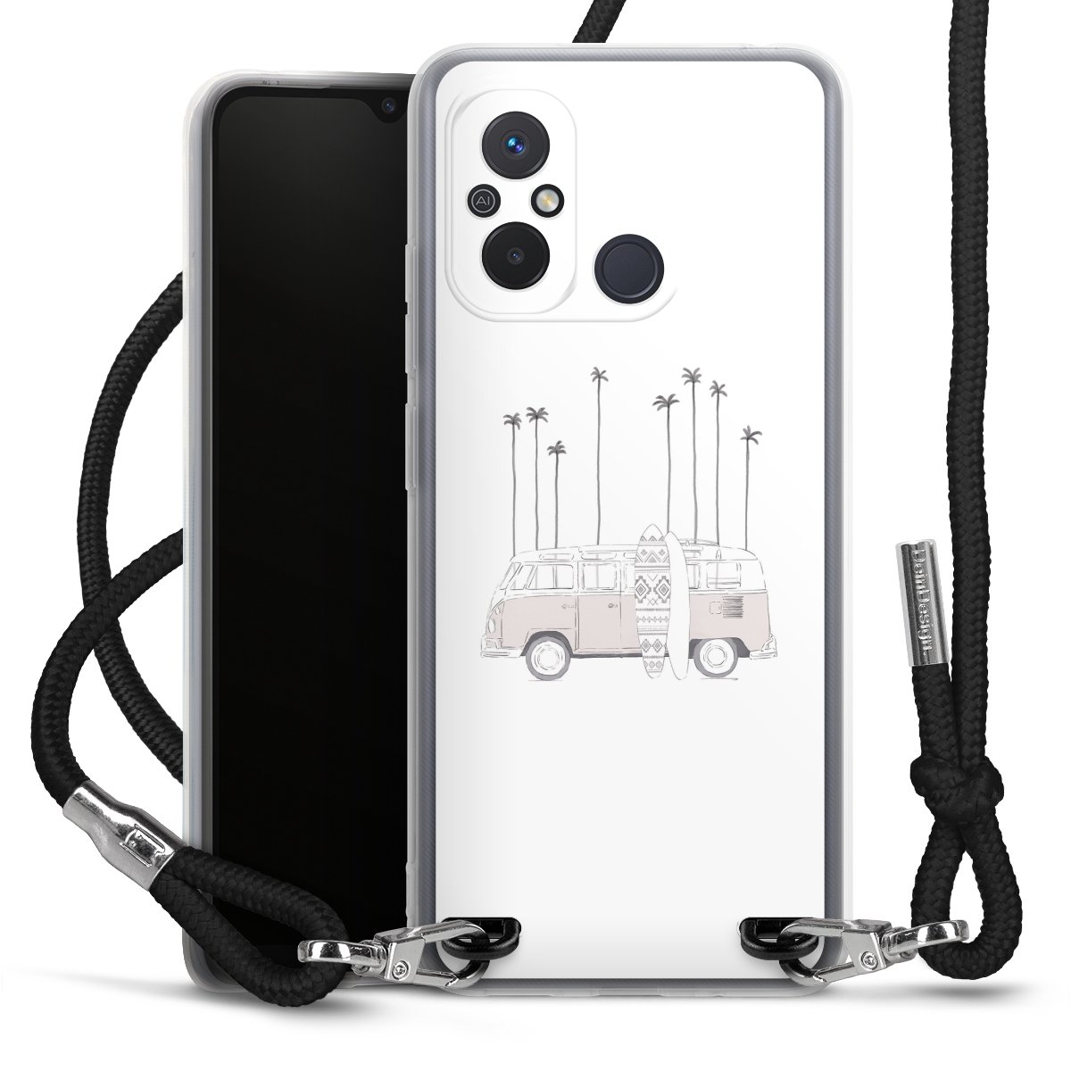 Keep your phone handy at all times, thanks to the flexible silicone case with a textile strap.