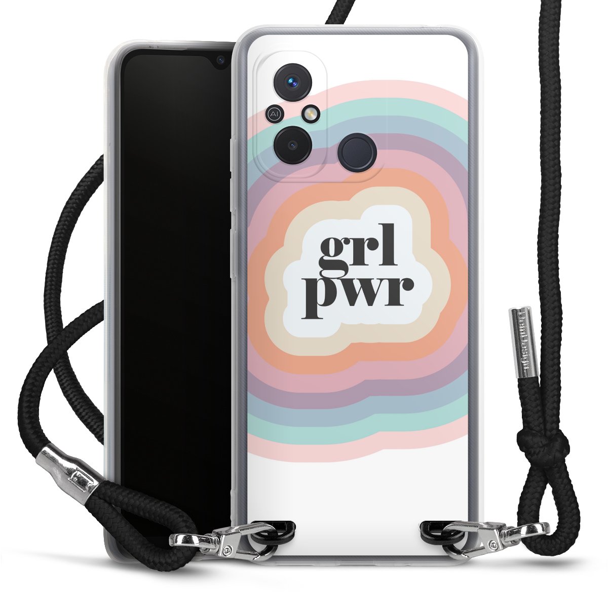 Keep your phone handy at all times, thanks to the flexible silicone case with a textile strap.