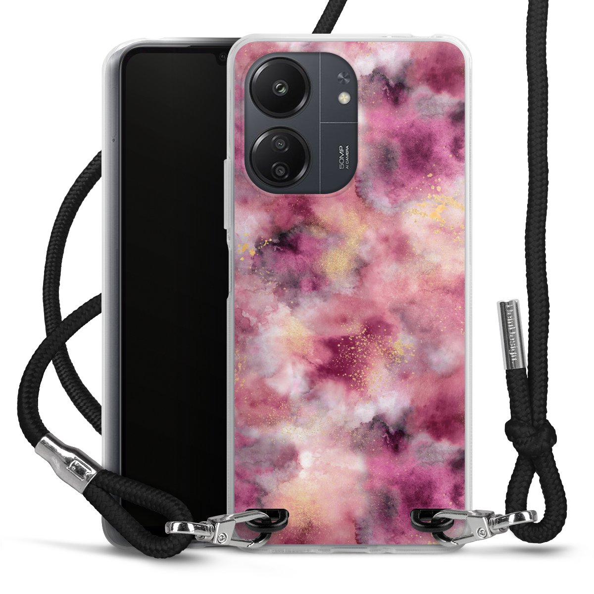 Keep your phone handy at all times, thanks to the flexible silicone case with a textile strap.