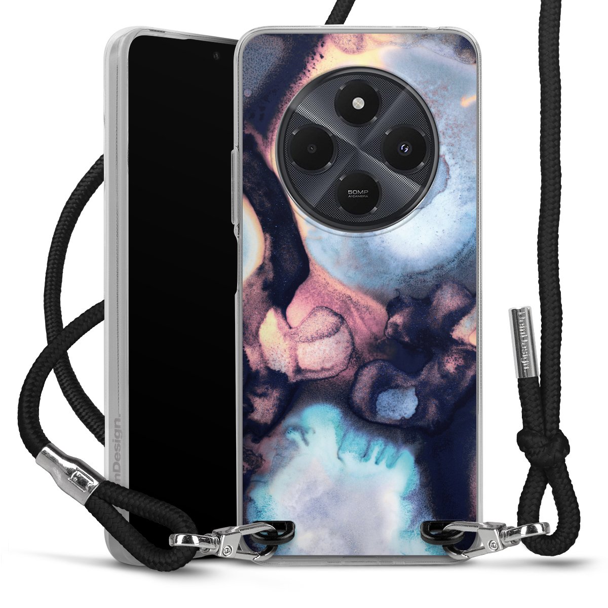 Keep your phone handy at all times, thanks to the flexible silicone case with a textile strap.