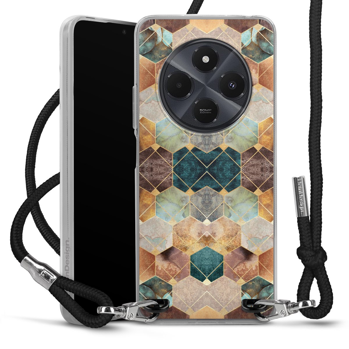 Keep your phone handy at all times, thanks to the flexible silicone case with a textile strap.