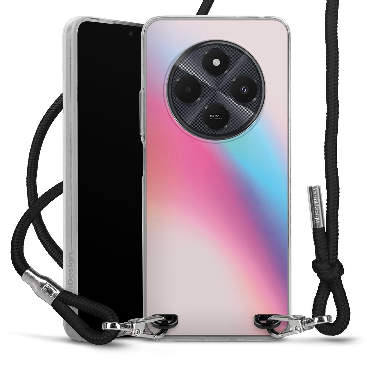 Keep your phone handy at all times, thanks to the flexible silicone case with a textile strap.