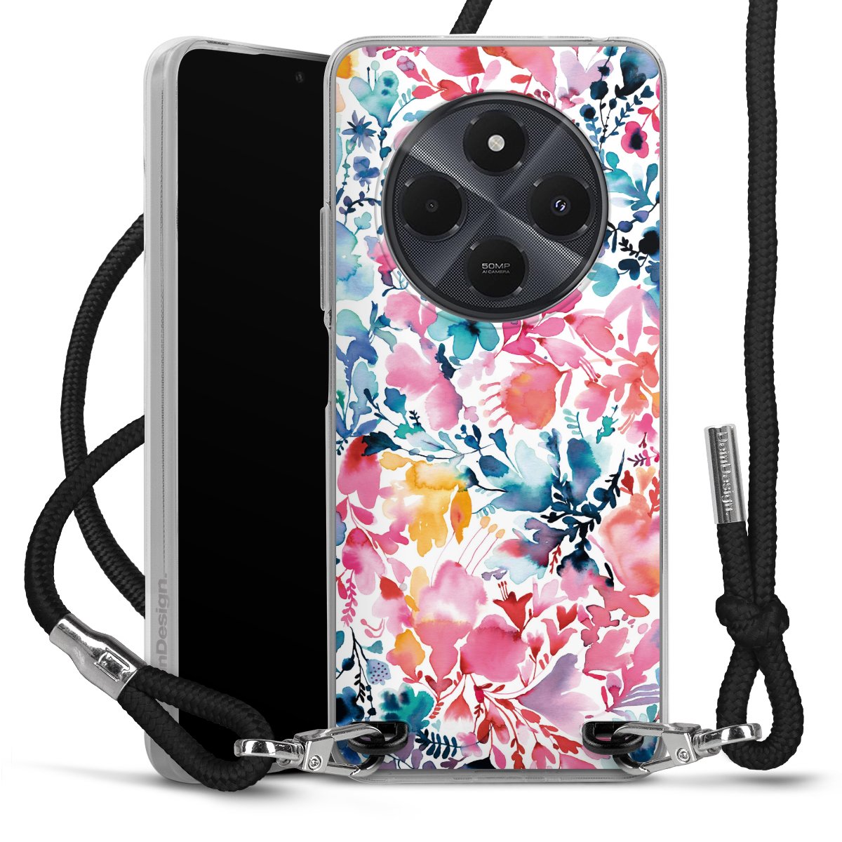 Keep your phone handy at all times, thanks to the flexible silicone case with a textile strap.