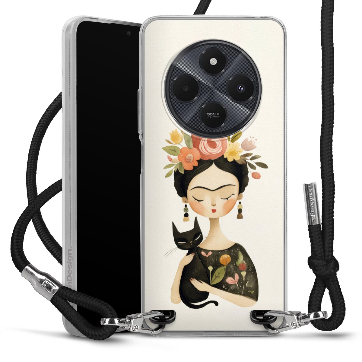 Keep your phone handy at all times, thanks to the flexible silicone case with a textile strap.
