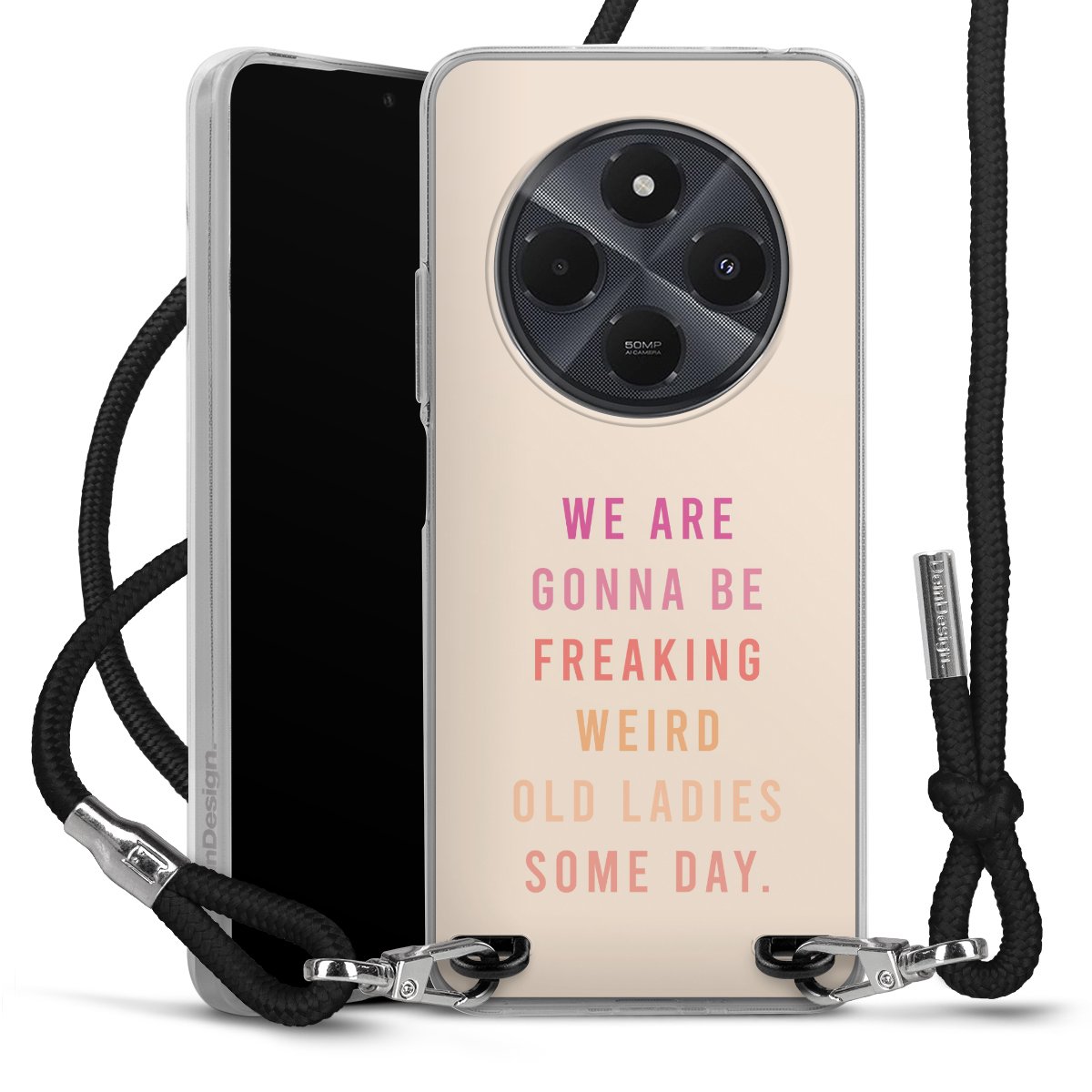 Keep your phone handy at all times, thanks to the flexible silicone case with a textile strap.