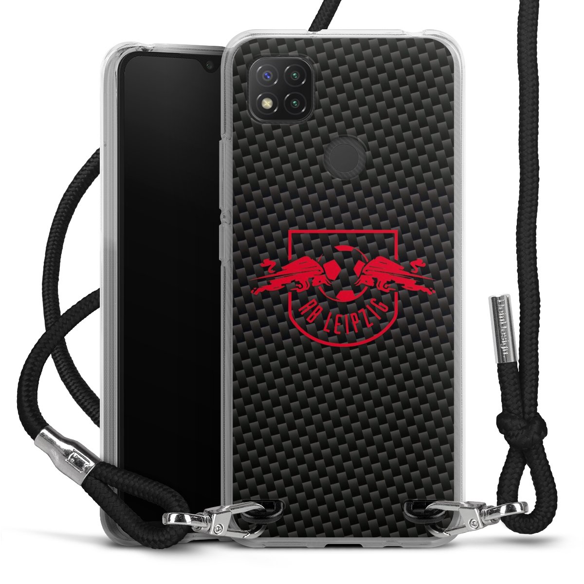 Red RB Leipzig logo on carbon look