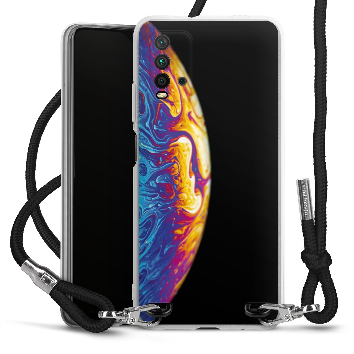 Keep your phone handy at all times, thanks to the flexible silicone case with a textile strap.
