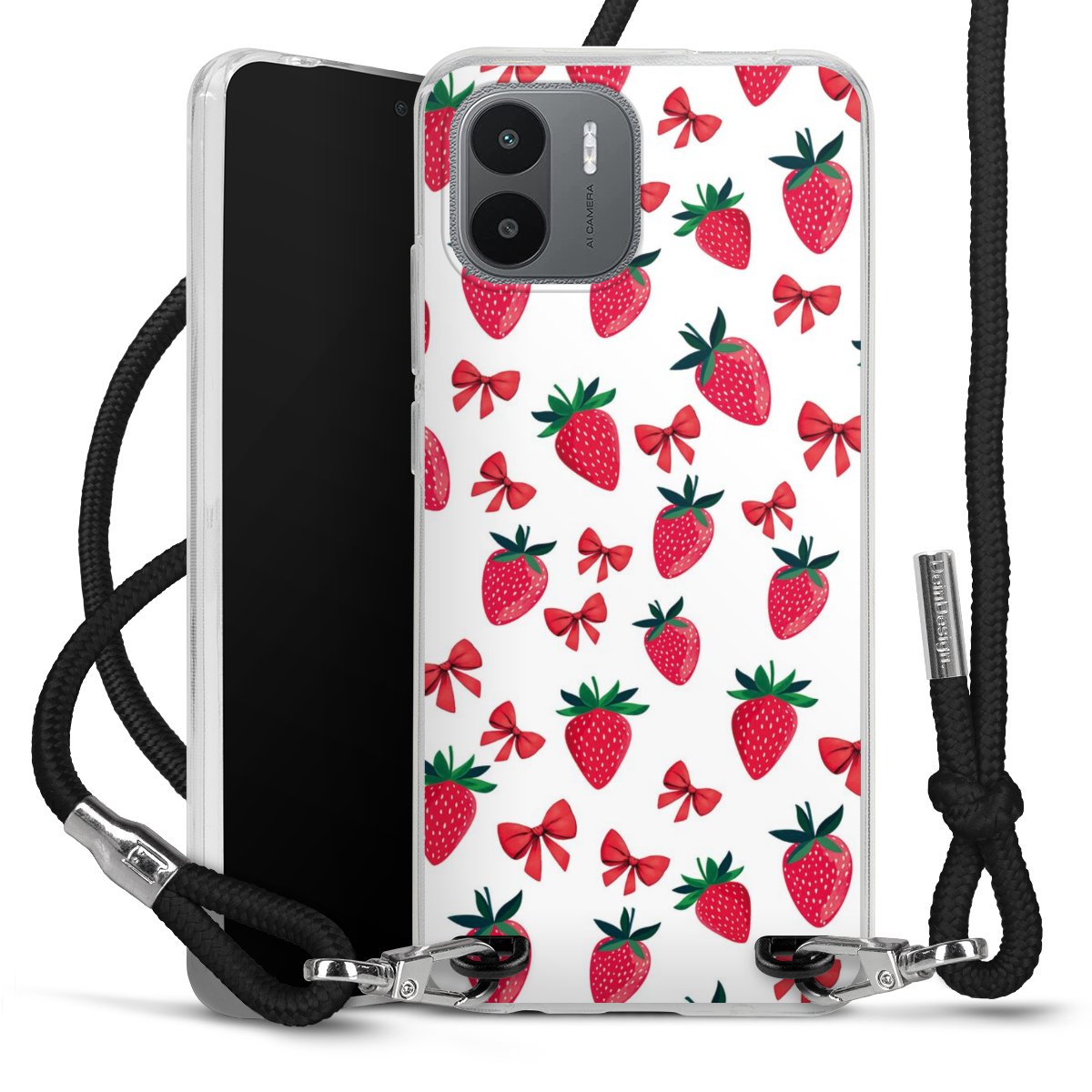 Keep your phone handy at all times, thanks to the flexible silicone case with a textile strap.
