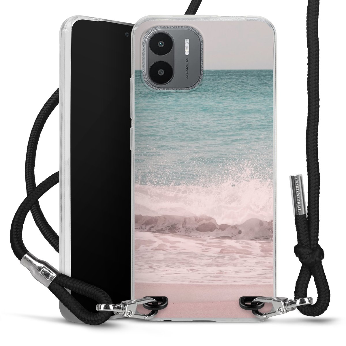 Keep your phone handy at all times, thanks to the flexible silicone case with a textile strap.