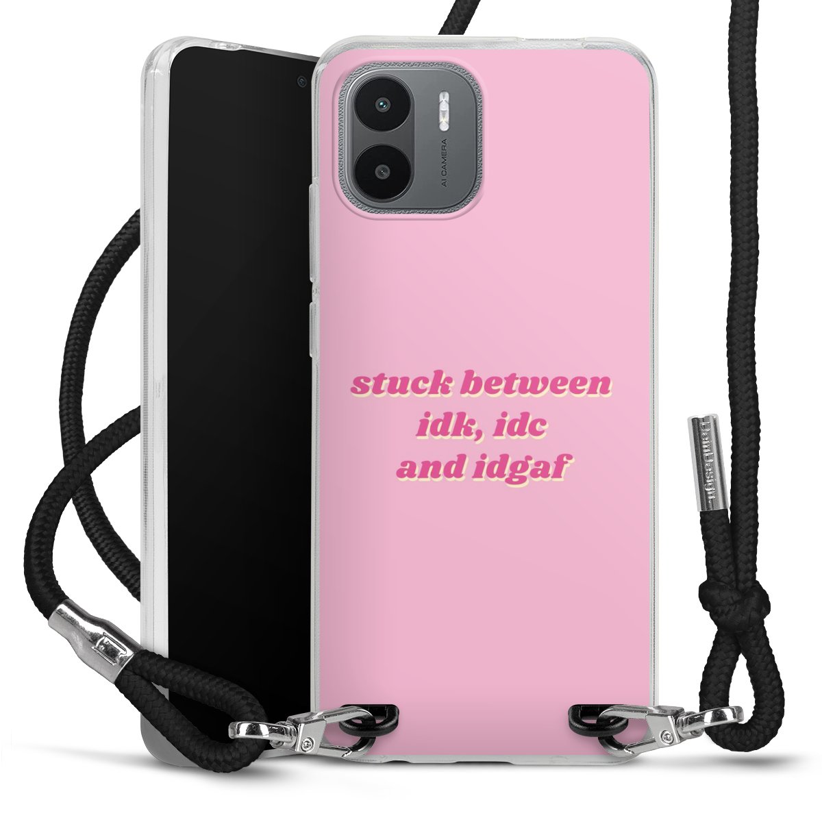 Keep your phone handy at all times, thanks to the flexible silicone case with a textile strap.