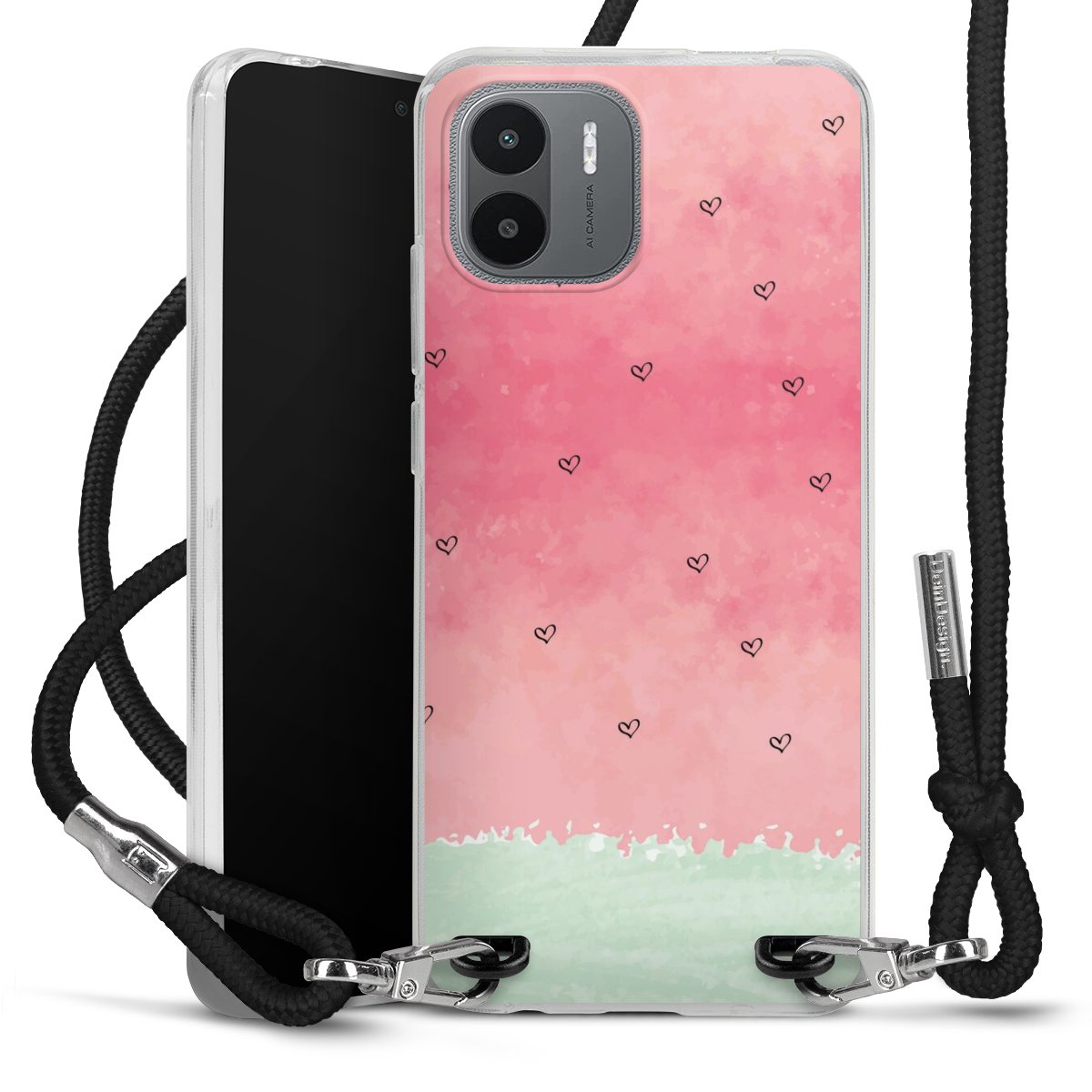Keep your phone handy at all times, thanks to the flexible silicone case with a textile strap.