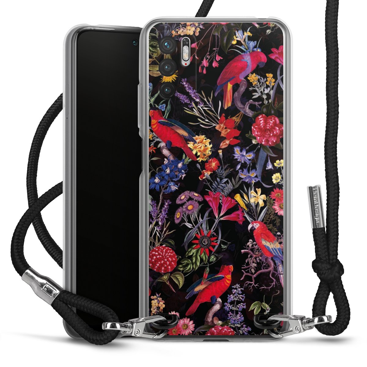 Dark Flowers and Parrots