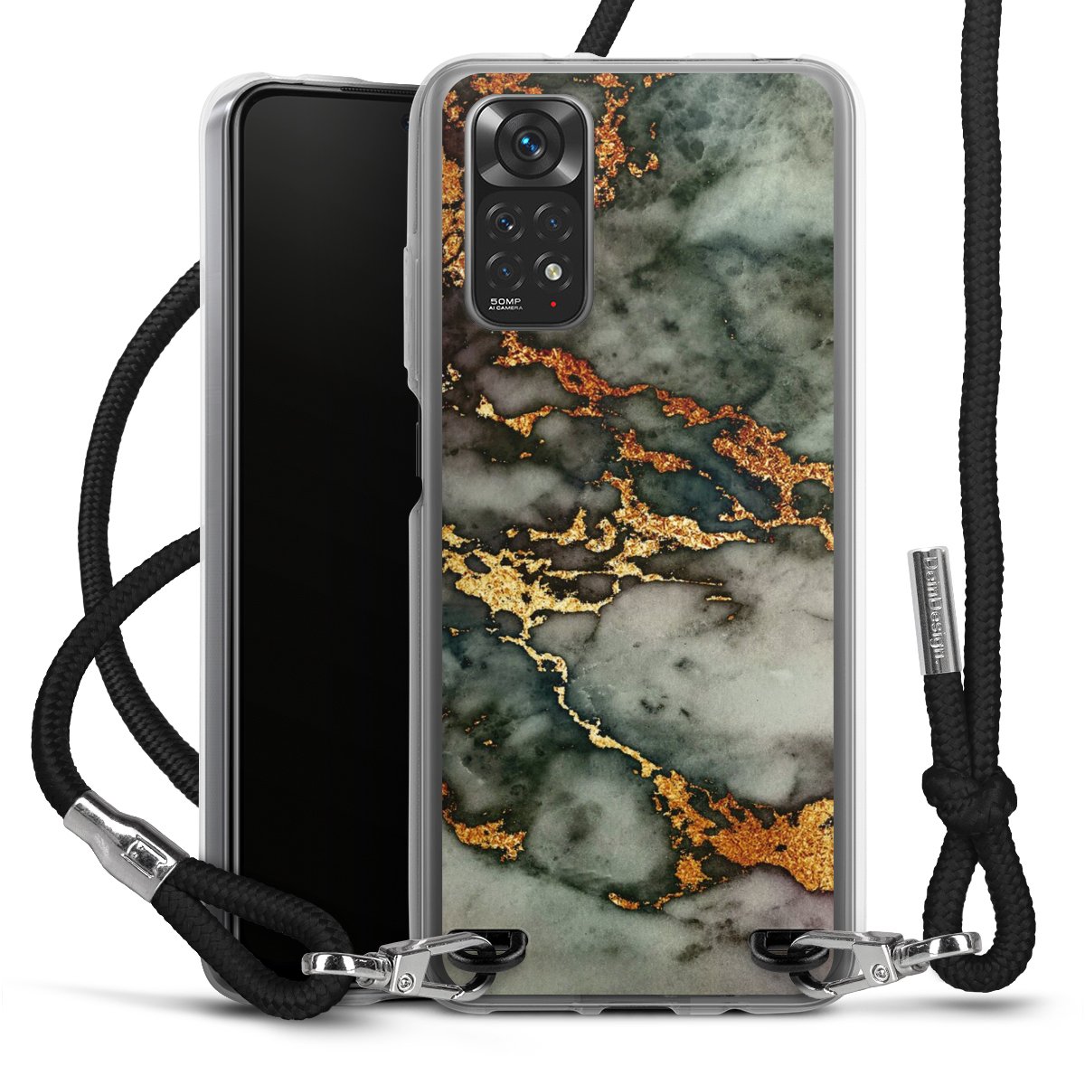 Keep your phone handy at all times, thanks to the flexible silicone case with a textile strap.