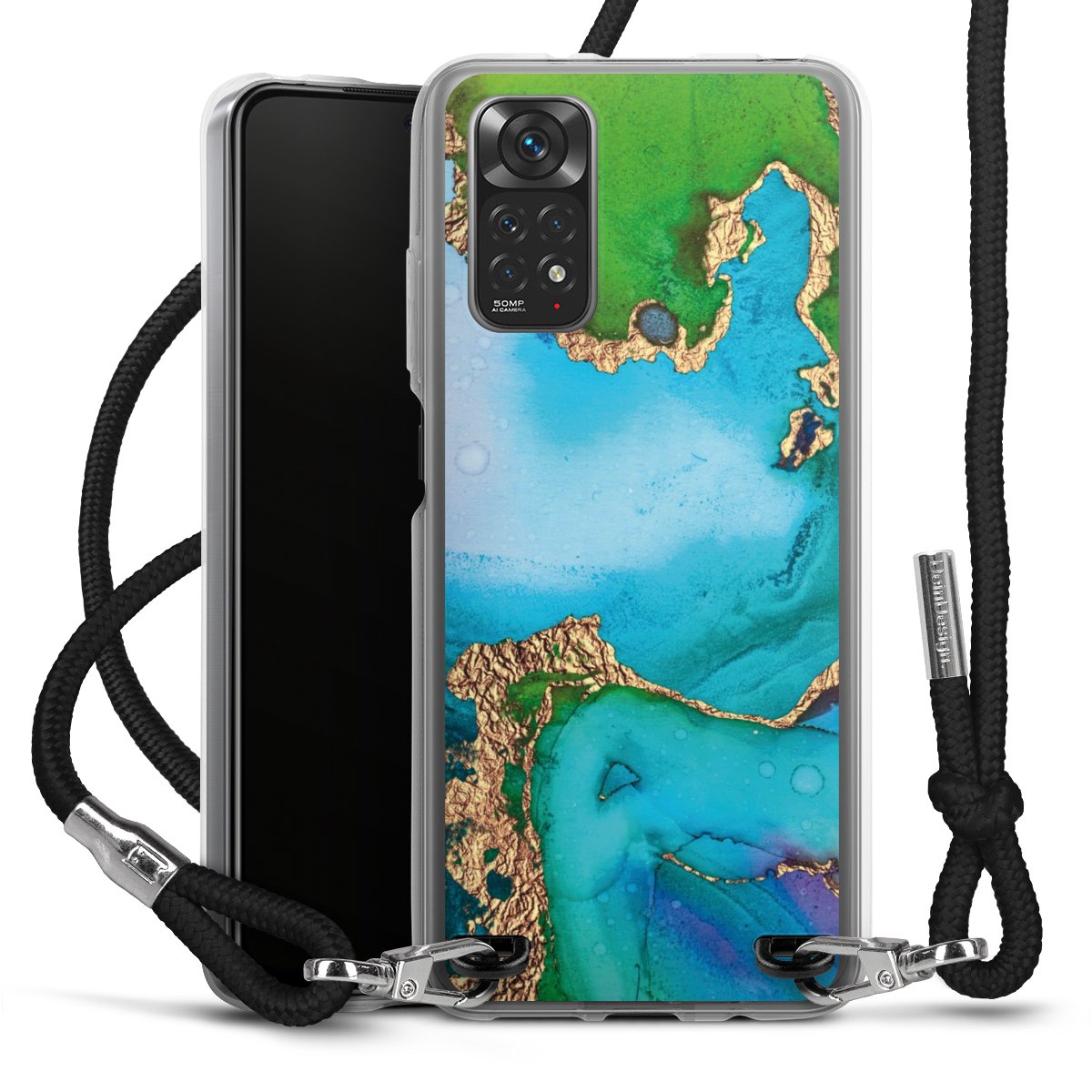 Keep your phone handy at all times, thanks to the flexible silicone case with a textile strap.