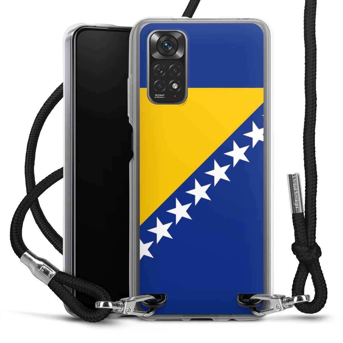 The flexible case is made from a high quality TPU material (thermoplastic Polyurethan). Thanks to its long-lasting and break resistant characteristics, the case is flexible yet consistent in form and has a great grip and feel. The textile strap made from Polyester gives a chic yet casual accent allowing you to carry your phone like a bag or necklace - a practical gadget perfect for your next adventure. The textile strap is about 1.70 meters long and the length can easily be adjusted through the knots. Our Carry Case is available in black, red, pink, grey, mustard, dark green and royal blue. We added a metal fastening to give the product an elegant touch. The ends of the textile strap are covered with metallic end caps to protect them against fraying.