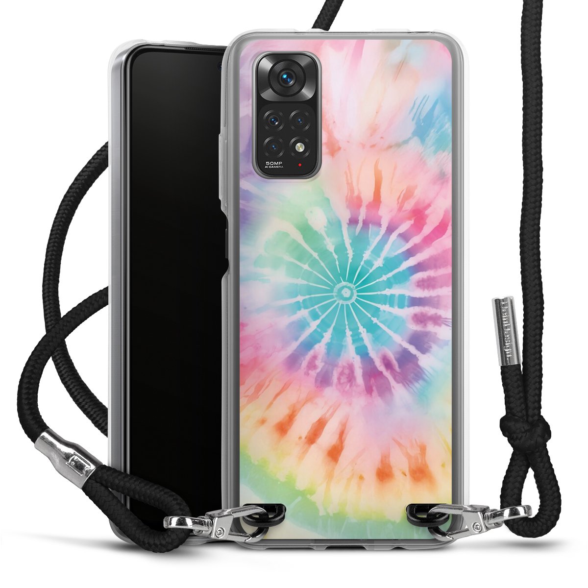 Keep your phone handy at all times, thanks to the flexible silicone case with a textile strap.