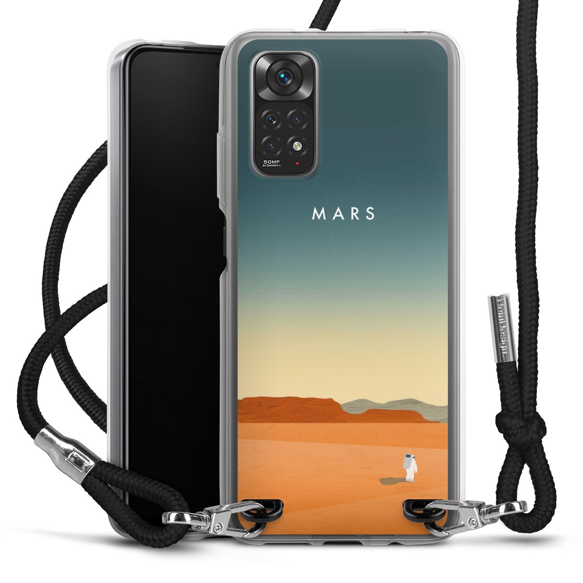 Keep your phone handy at all times, thanks to the flexible silicone case with a textile strap.