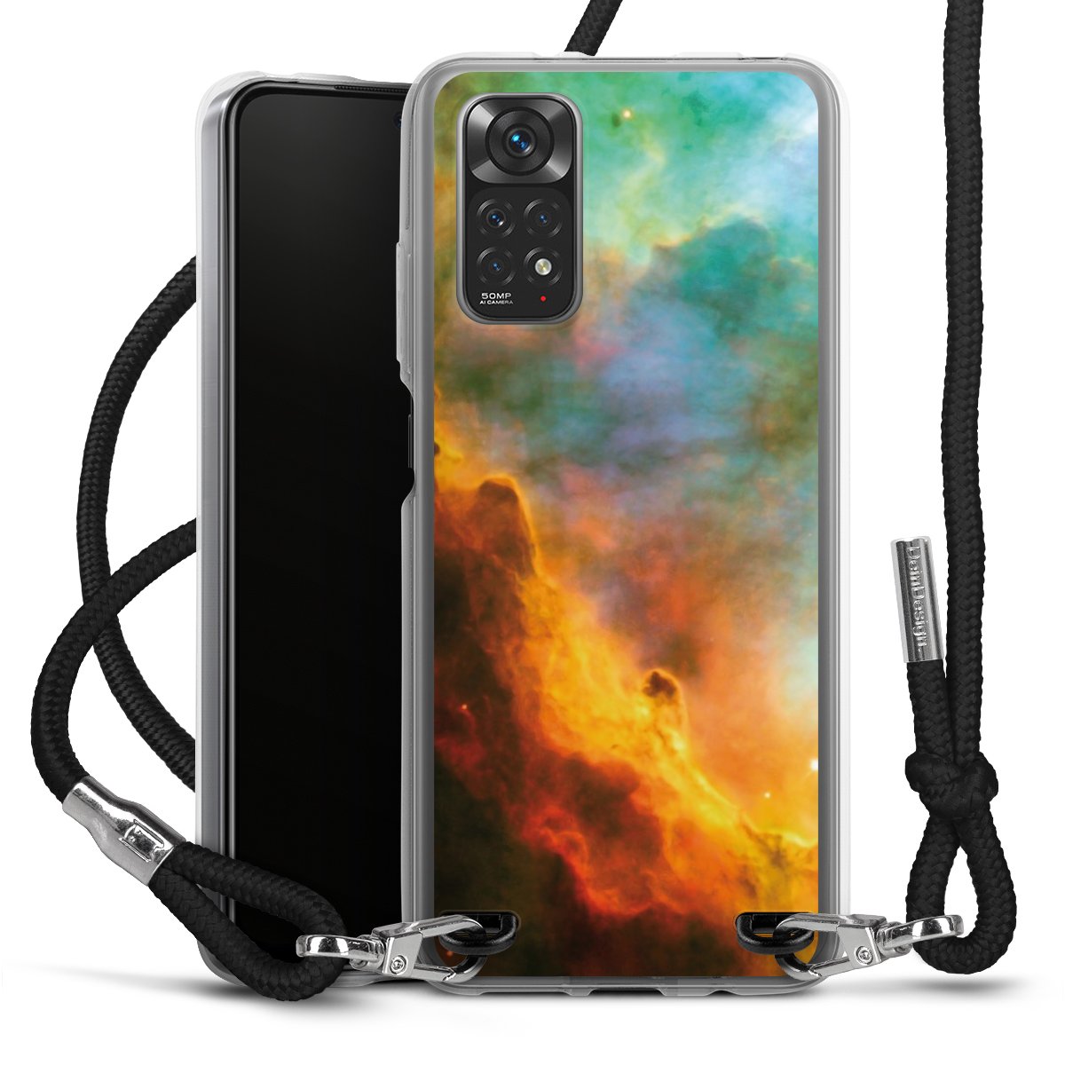 Keep your phone handy at all times, thanks to the flexible silicone case with a textile strap.