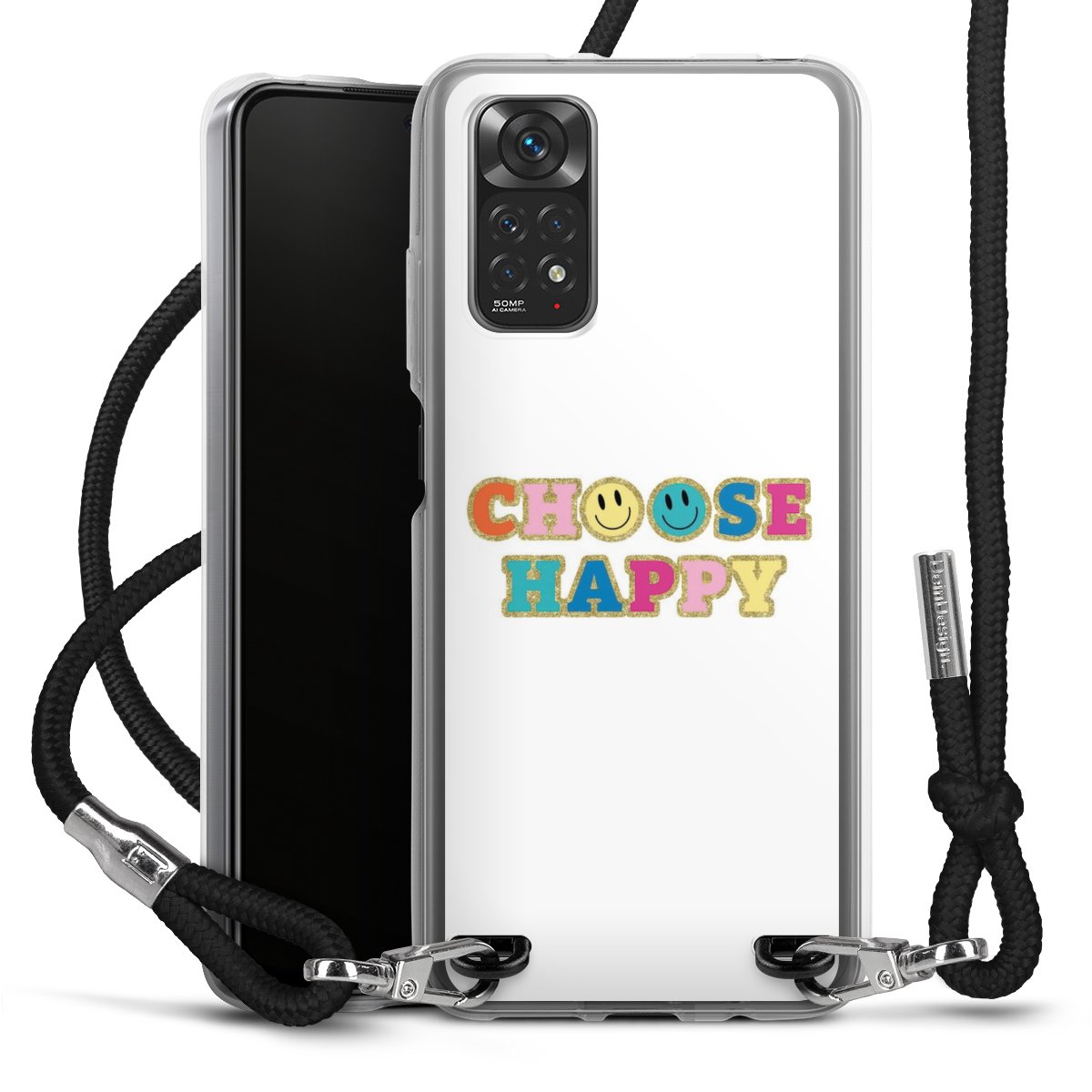 Keep your phone handy at all times, thanks to the flexible silicone case with a textile strap.