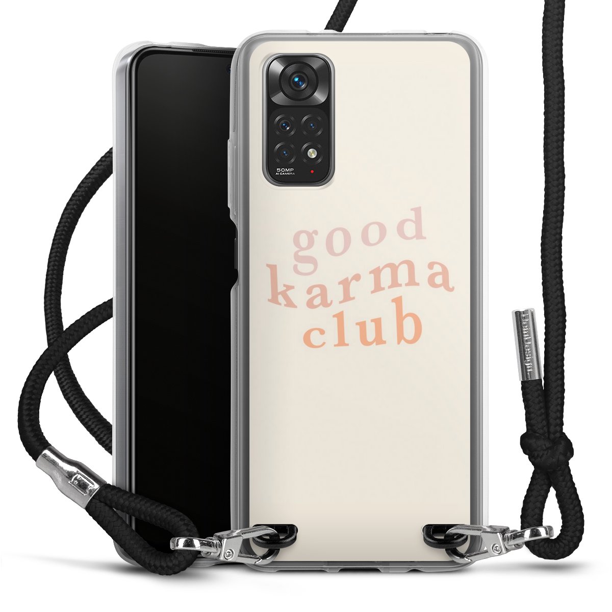 Keep your phone handy at all times, thanks to the flexible silicone case with a textile strap.