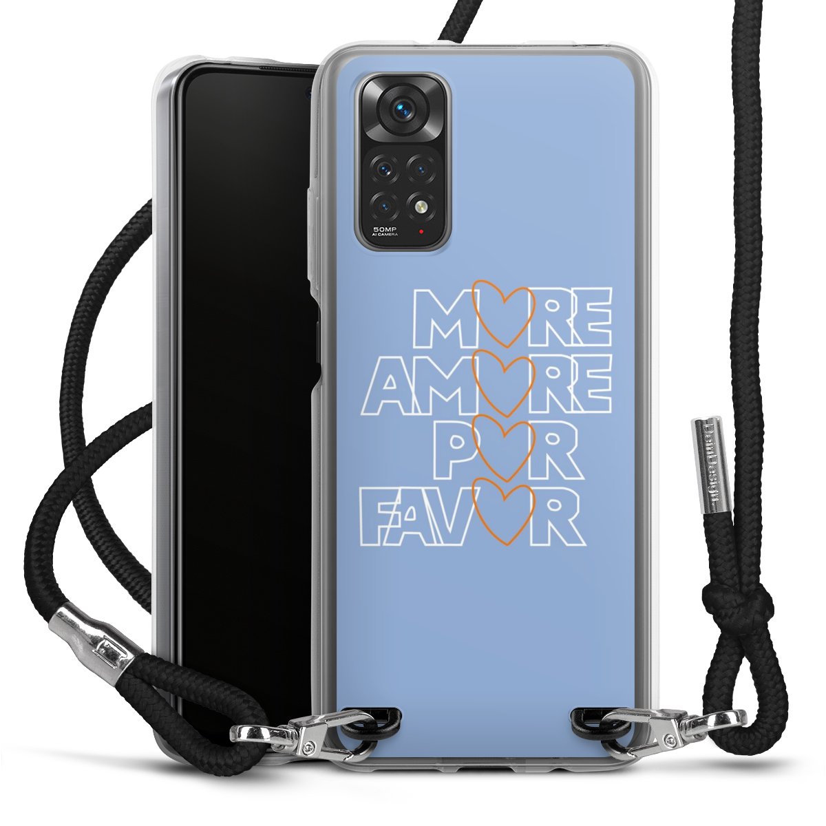 Keep your phone handy at all times, thanks to the flexible silicone case with a textile strap.