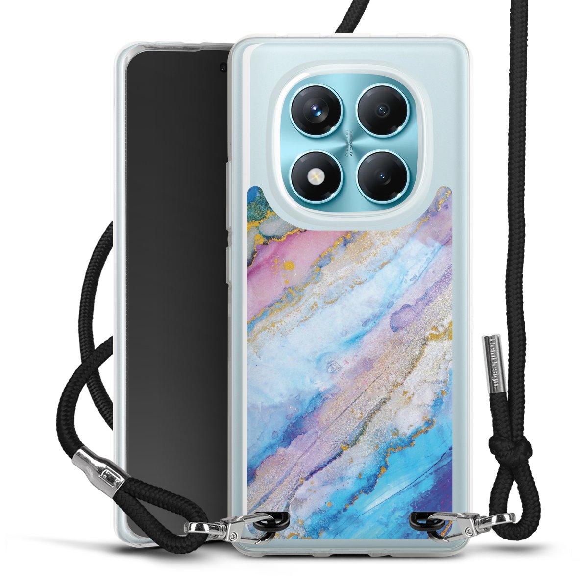 Keep your phone handy at all times, thanks to the flexible silicone case with a textile strap.